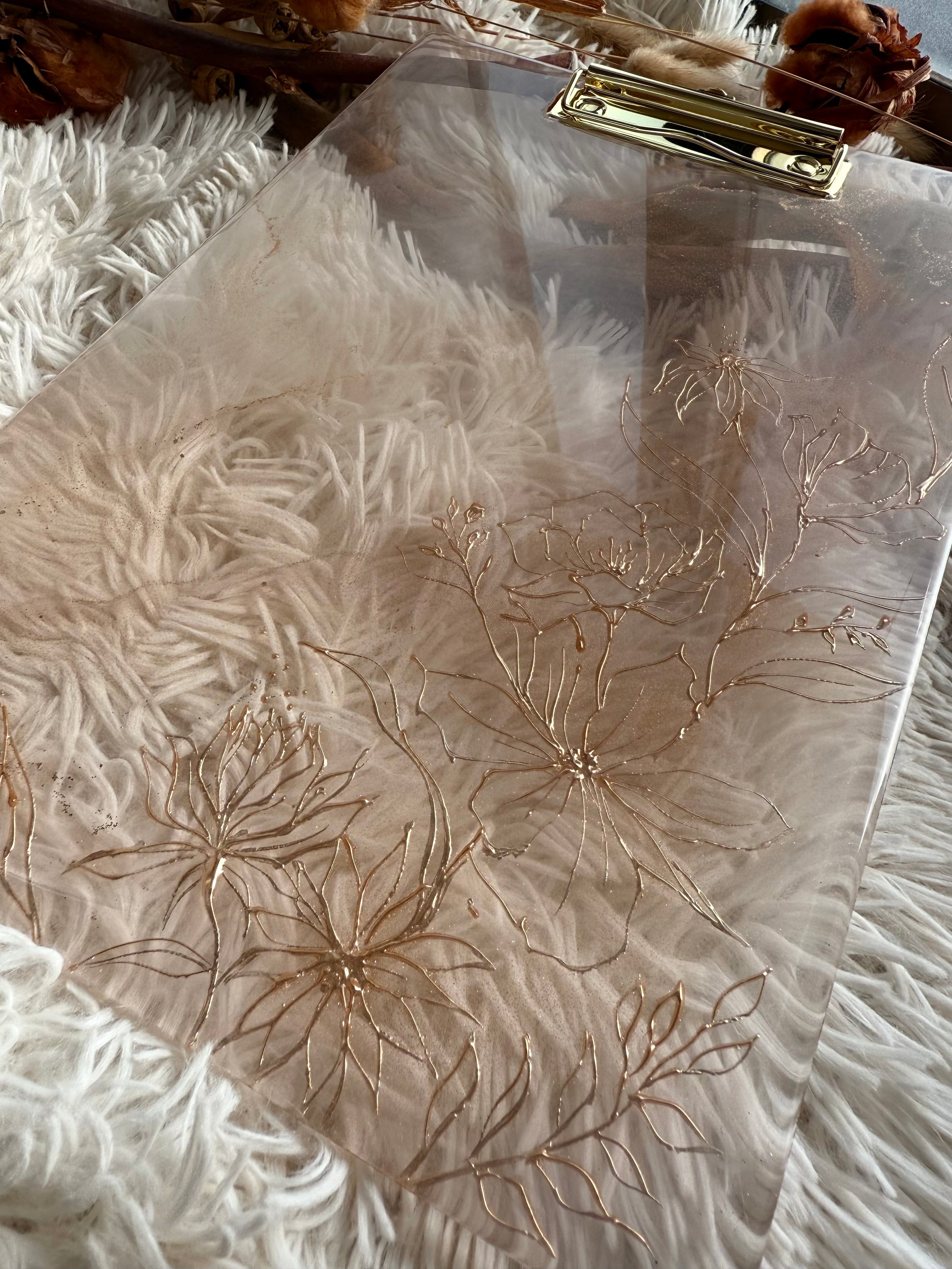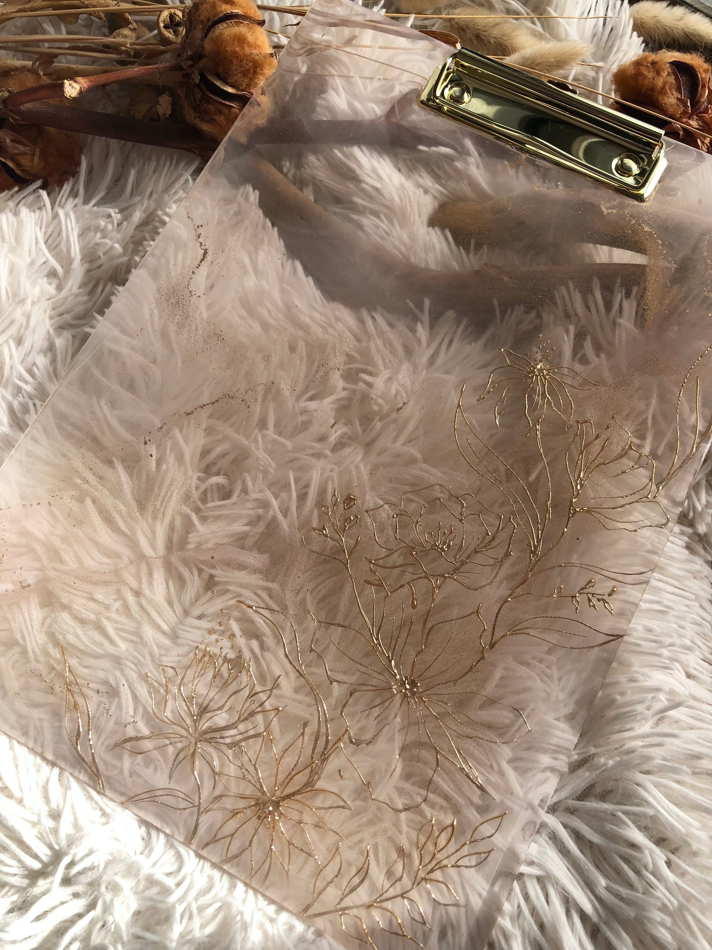 ゴールドラインでエレガントなBOTANICALフラワーを描きました