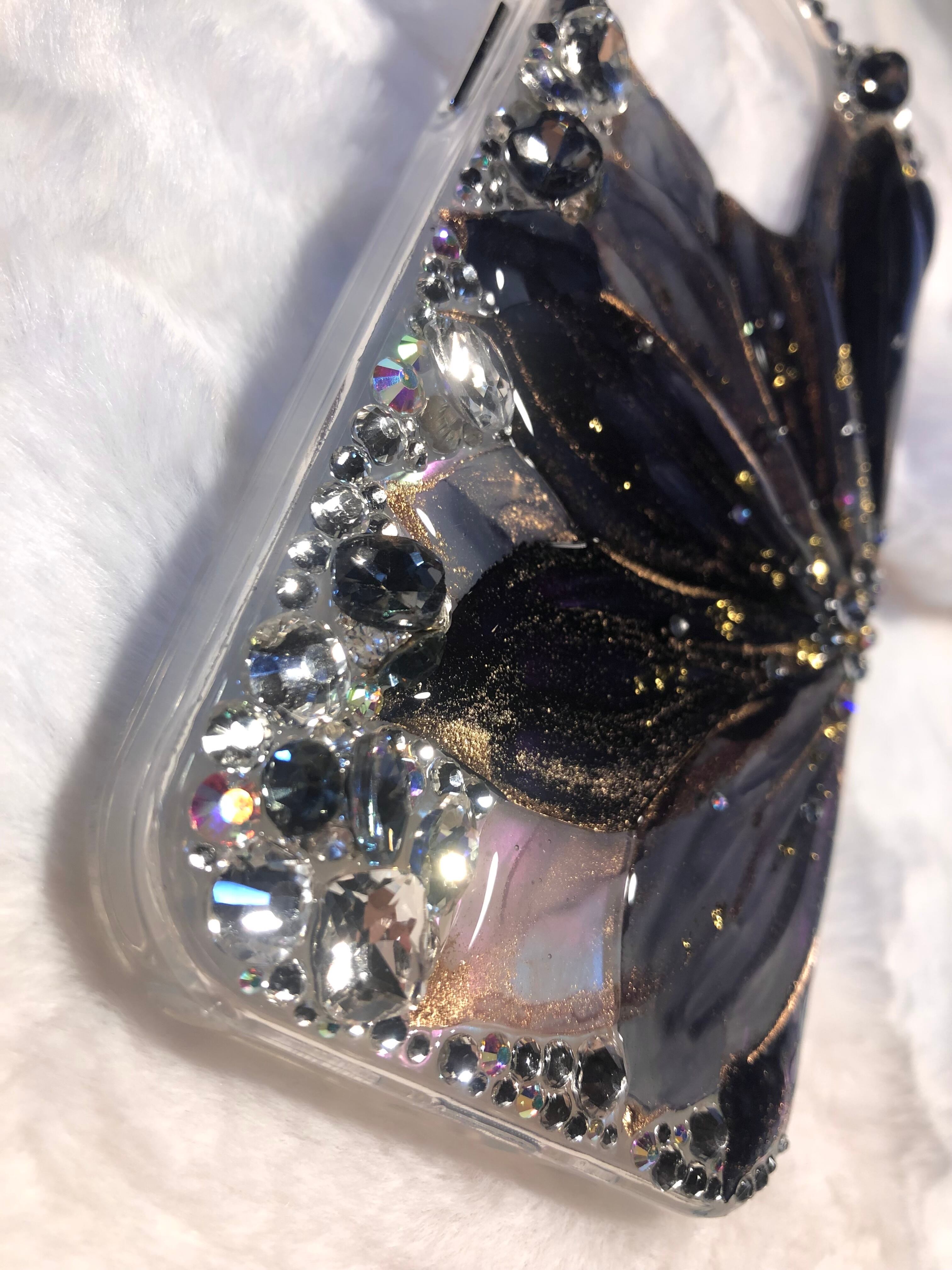 【iPhoneケース】プルルンフラワー【蒼黒フラワー】