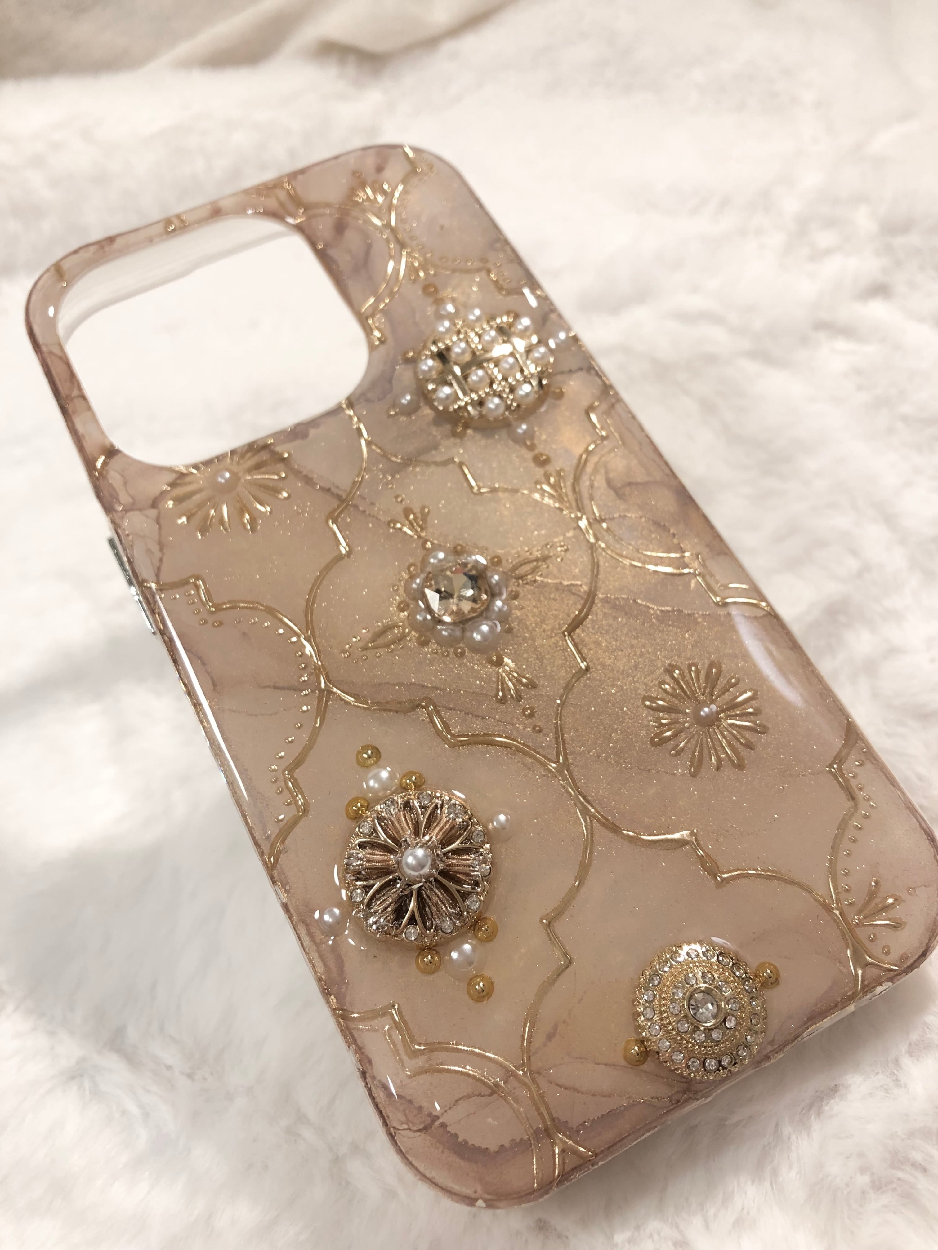 グレージュベースにモロッカンラインを描きアンティークボタンを使用してデザインを作りました❤︎