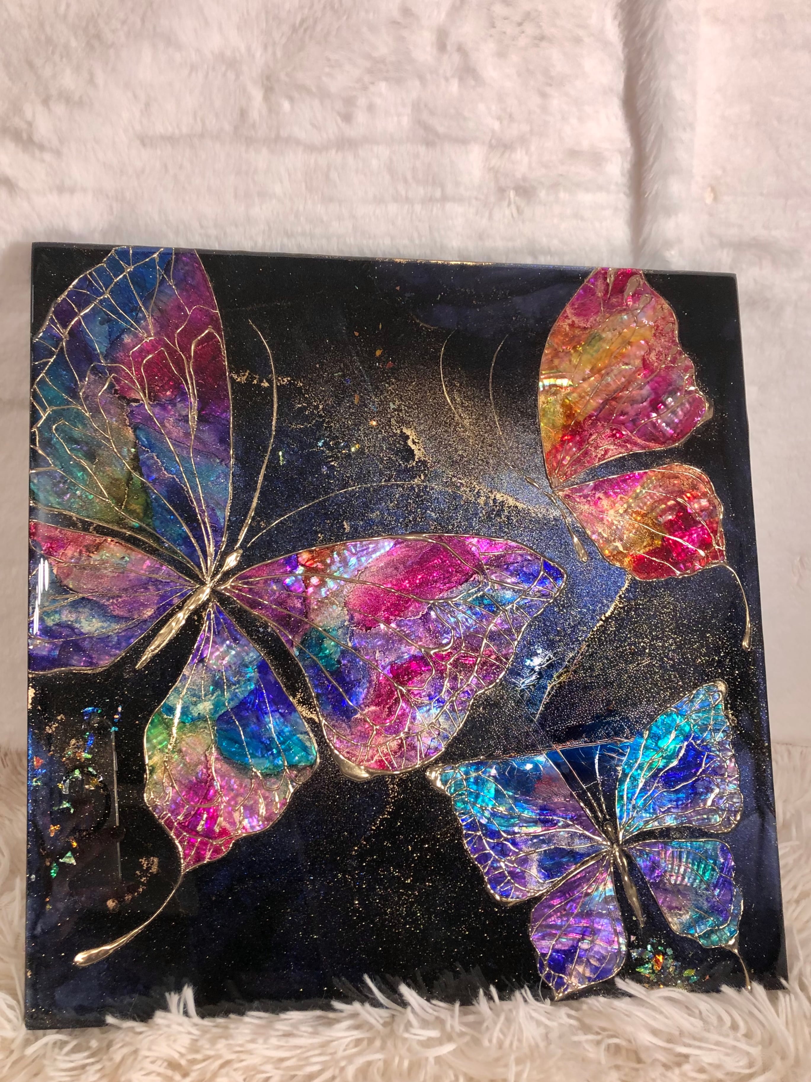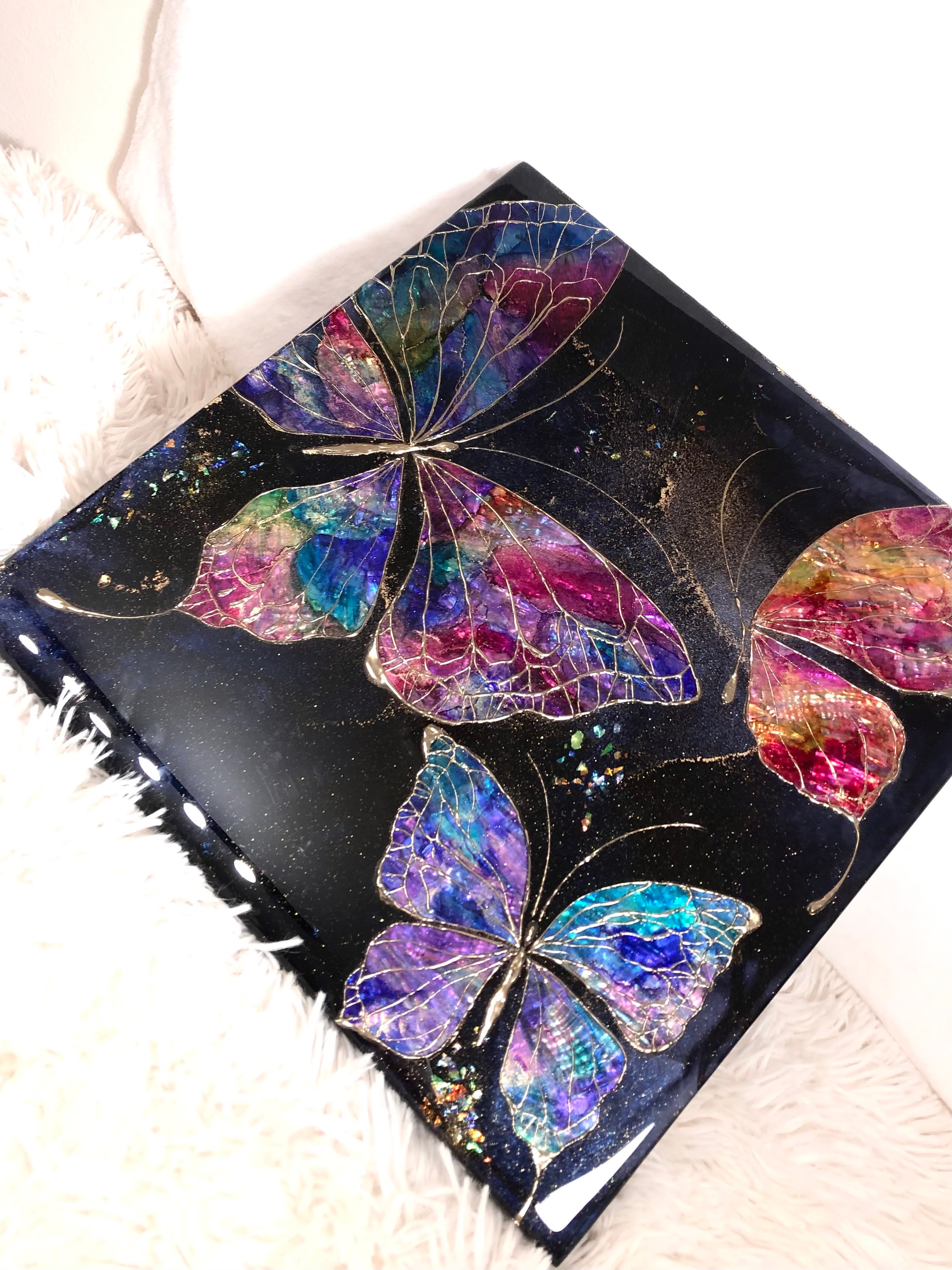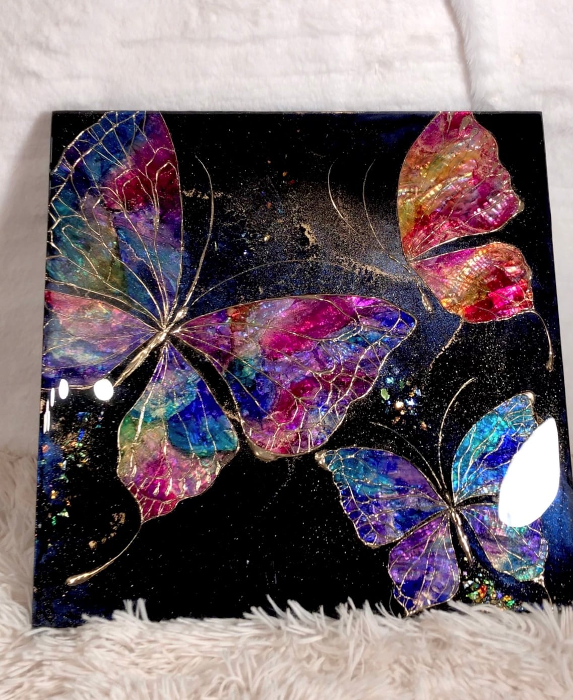 10色以上のレインボーカラーを使用しどの角度から見ても、どの部分を見ても鮮やかなバタフライとなる様にしました
