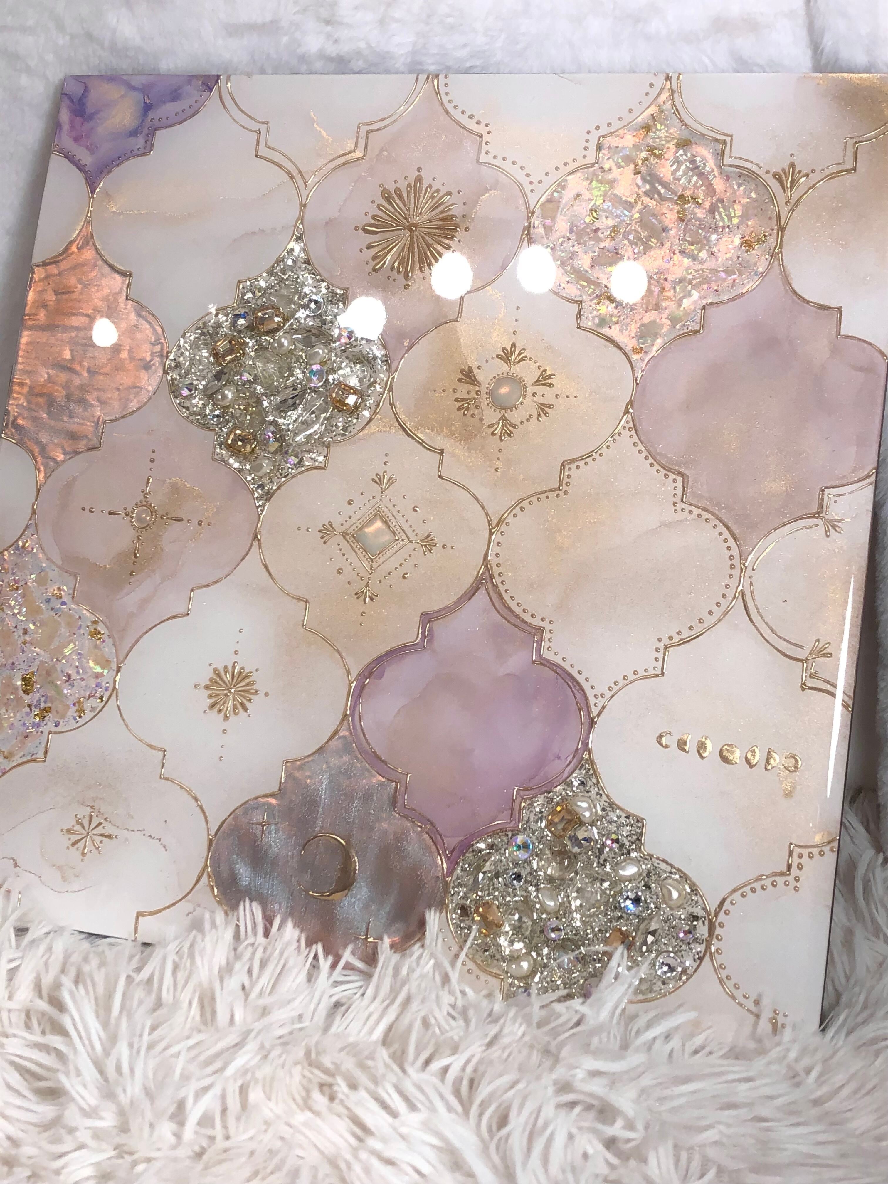 異国情緒あふれるモロッカン柄をベースに、多彩な質感のパーツを組み合わせ、まるでジュエリーの様な装飾アートパネルです♡