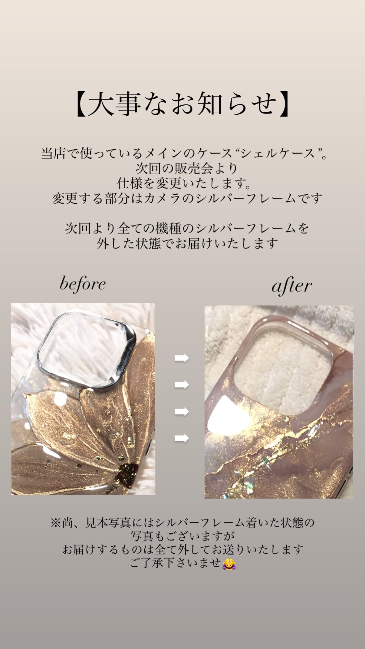 シェルケースのカメラ周りのシルバーフレームは外した状態でお届けいたします。